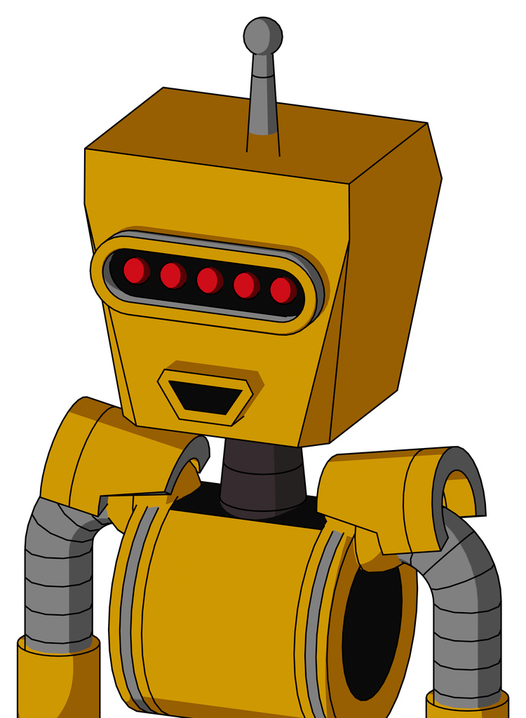 Yellow Robot With Box Head And Happy Mouth And Visor Eye And Single Antenna