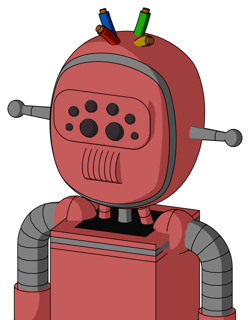 Pinkish Mech With Bubble Head And Speakers Mouth And Bug Eyes And Wire Hair