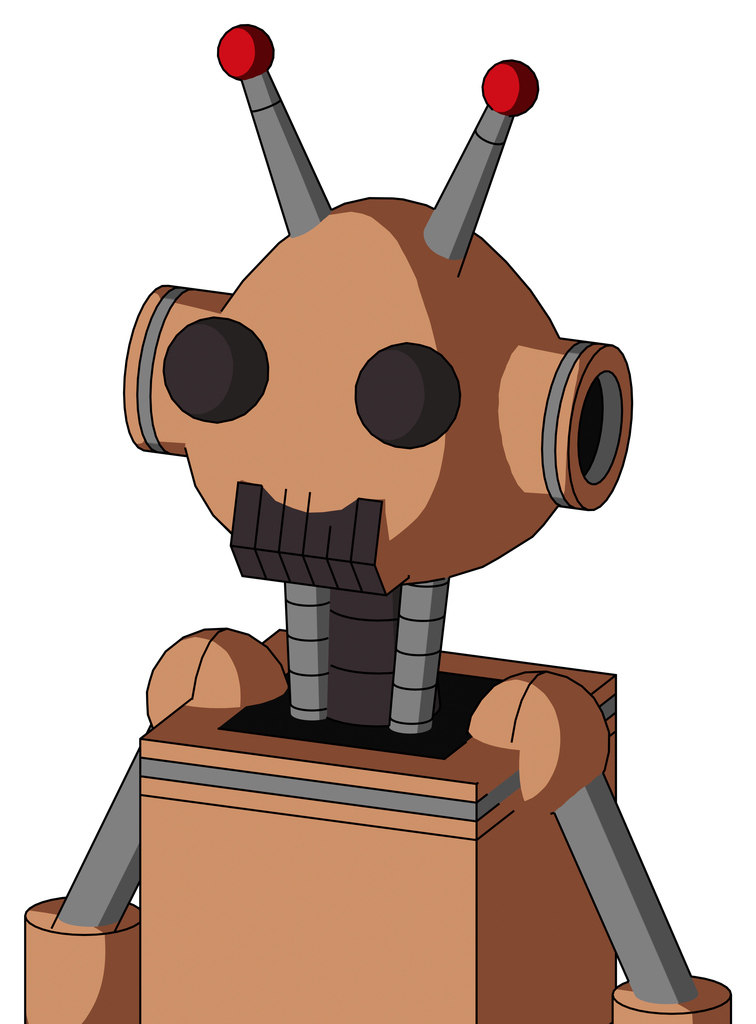 Peach Robot With Rounded Head And Dark Tooth Mouth And Two Eyes And Double Led Antenna
