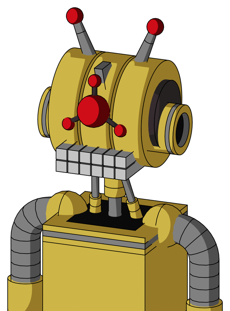 Yellow Droid With Multi-Toroid Head And Keyboard Mouth And Cyclops Compound Eyes And Double Led Antenna