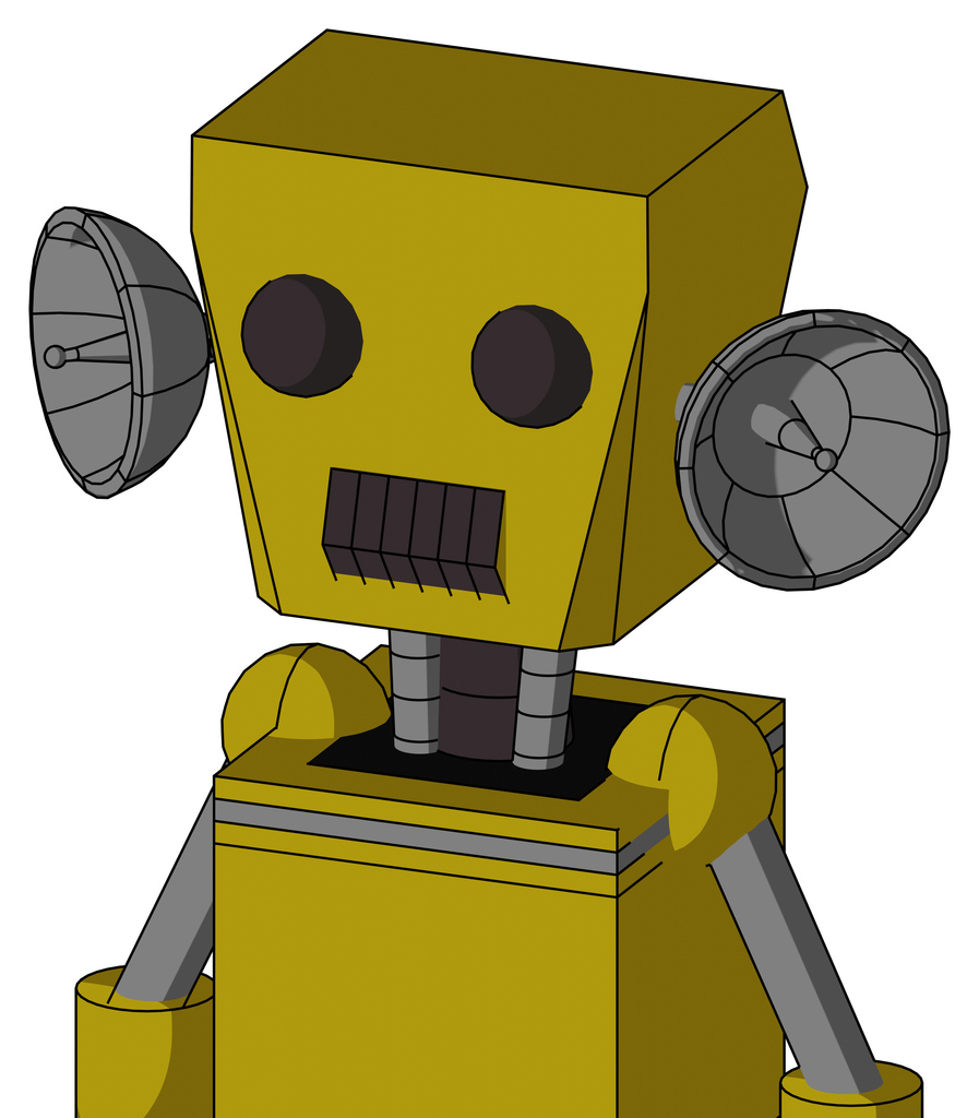Yellow Automaton With Box Head And Dark Tooth Mouth And Two Eyes