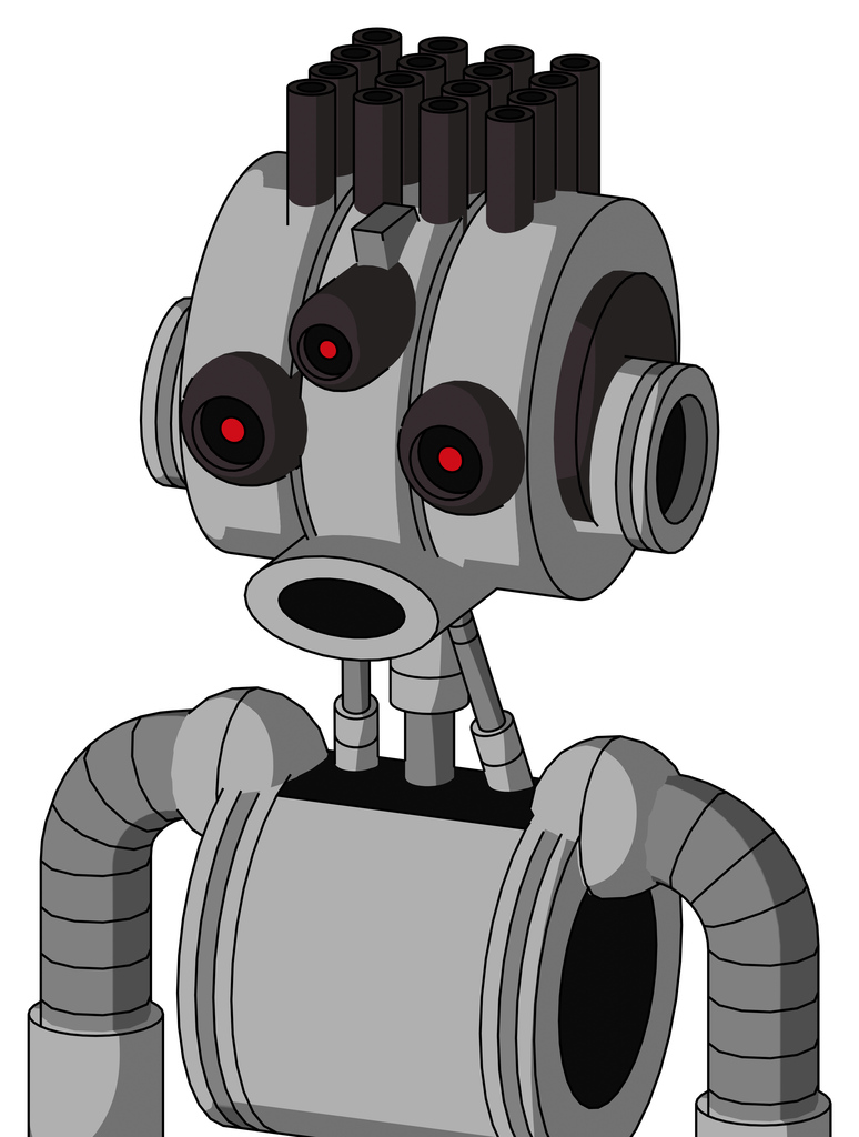 White Automaton With Multi-Toroid Head And Round Mouth And Three-Eyed And Pipe Hair