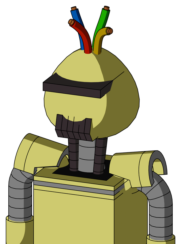 Yellow Robot With Rounded Head And Dark Tooth Mouth And Black Visor Cyclops And Wire Hair