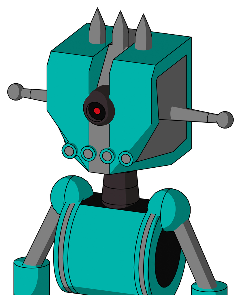 Greenish Robot With Mechanical Head And Pipes Mouth And Black Cyclops Eye And Three Spiked