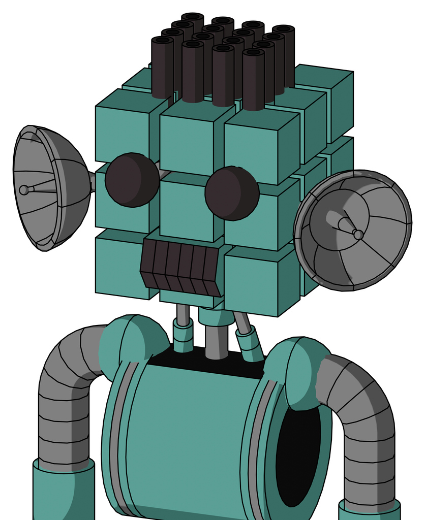 Greenish Mech With Cube Head And Dark Tooth Mouth And Two Eyes And Pipe Hair