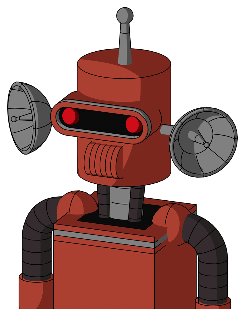 Red Automaton With Cylinder Head And Speakers Mouth And Visor Eye And Single Antenna