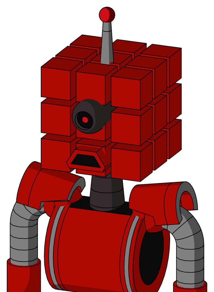 Red Mech With Cube Head And Sad Mouth And Black Cyclops Eye And Single Led Antenna