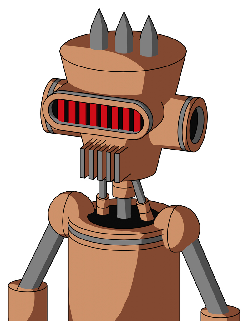 Peach Robot With Cylinder-Conic Head And Vent Mouth And Visor Eye And Three Spiked