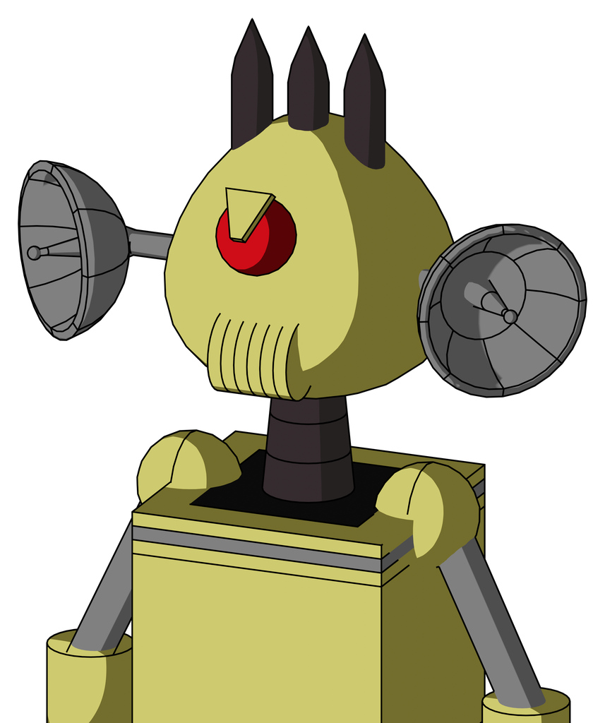 Yellow Robot With Rounded Head And Speakers Mouth And Angry Cyclops And Three Dark Spikes