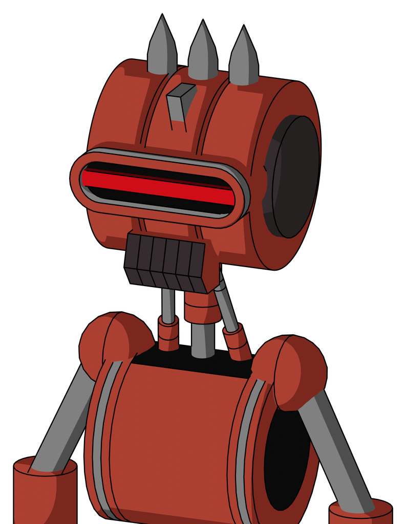 Red Automaton With Multi-Toroid Head And Dark Tooth Mouth And Visor Eye And Three Spiked