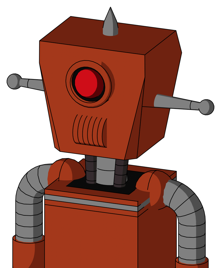 Orange Robot With Box Head And Speakers Mouth And Cyclops Eye And Spike Tip
