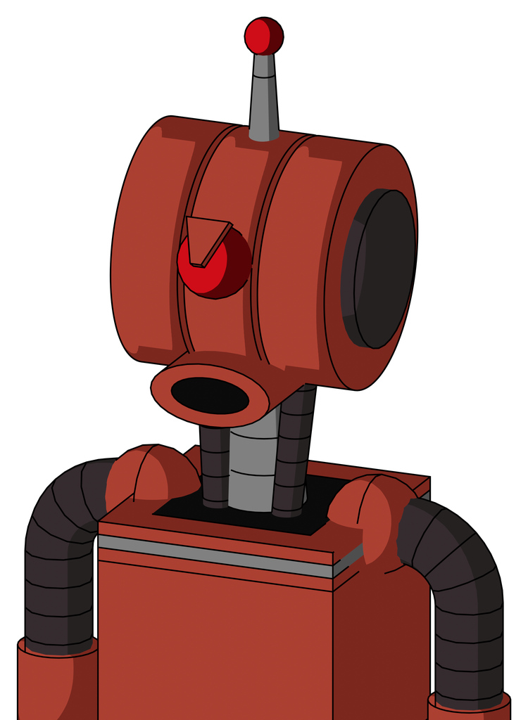 Red Automaton With Multi-Toroid Head And Round Mouth And Angry Cyclops And Single Led Antenna