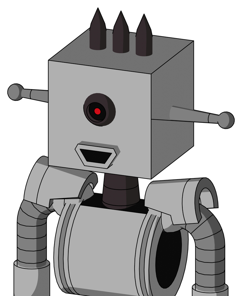 White Automaton With Box Head And Happy Mouth And Black Cyclops Eye And Three Dark Spikes