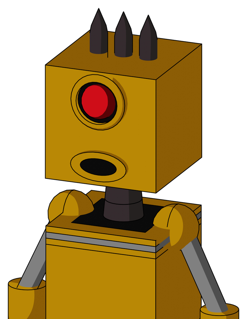 Yellow Droid With Box Head And Round Mouth And Cyclops Eye And Three Dark Spikes