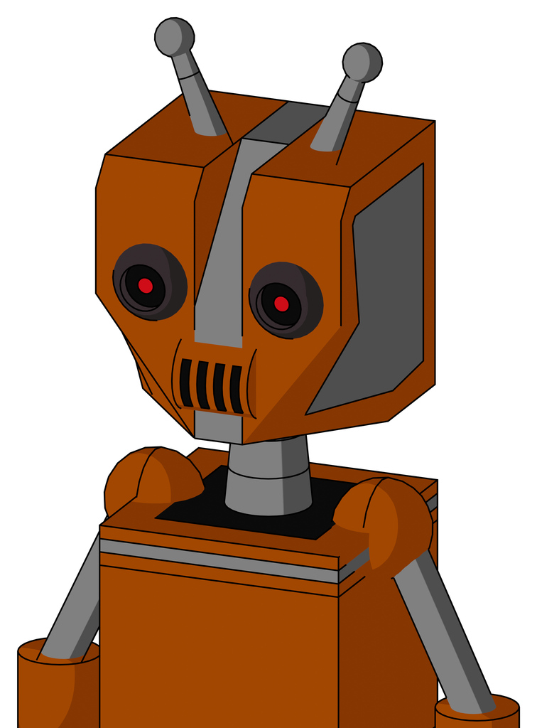 Redish-Orange Mech With Mechanical Head And Speakers Mouth And Black Glowing Red Eyes And Double Antenna
