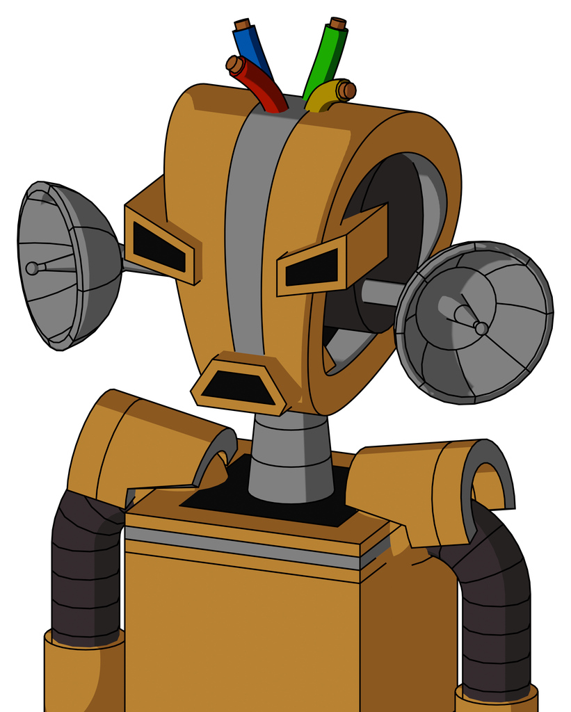 Yellowish Droid With Droid Head And Sad Mouth And Angry Eyes And Wire Hair