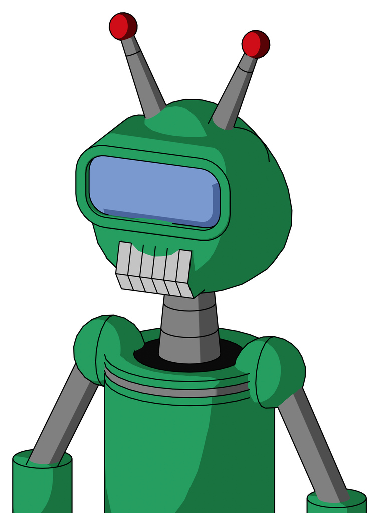 Green Automaton With Rounded Head And Teeth Mouth And Large Blue Visor Eye And Double Led Antenna