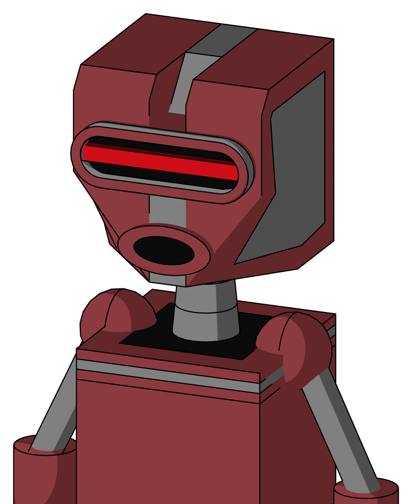 Red Mech With Mechanical Head And Round Mouth And Visor Eye