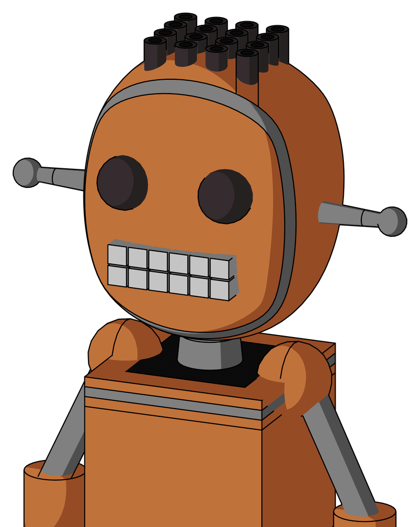 Orange Droid With Bubble Head And Keyboard Mouth And Two Eyes And Pipe Hair