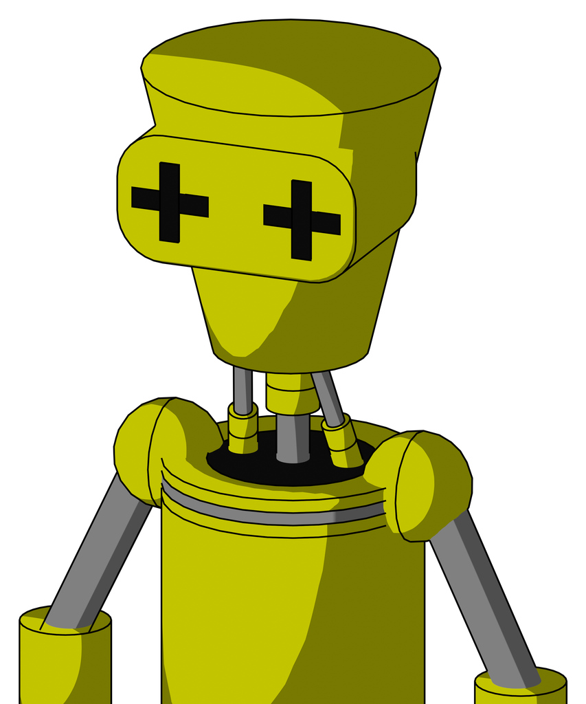 Yellow Robot With Cylinder-Conic Head And Plus Sign Eyes