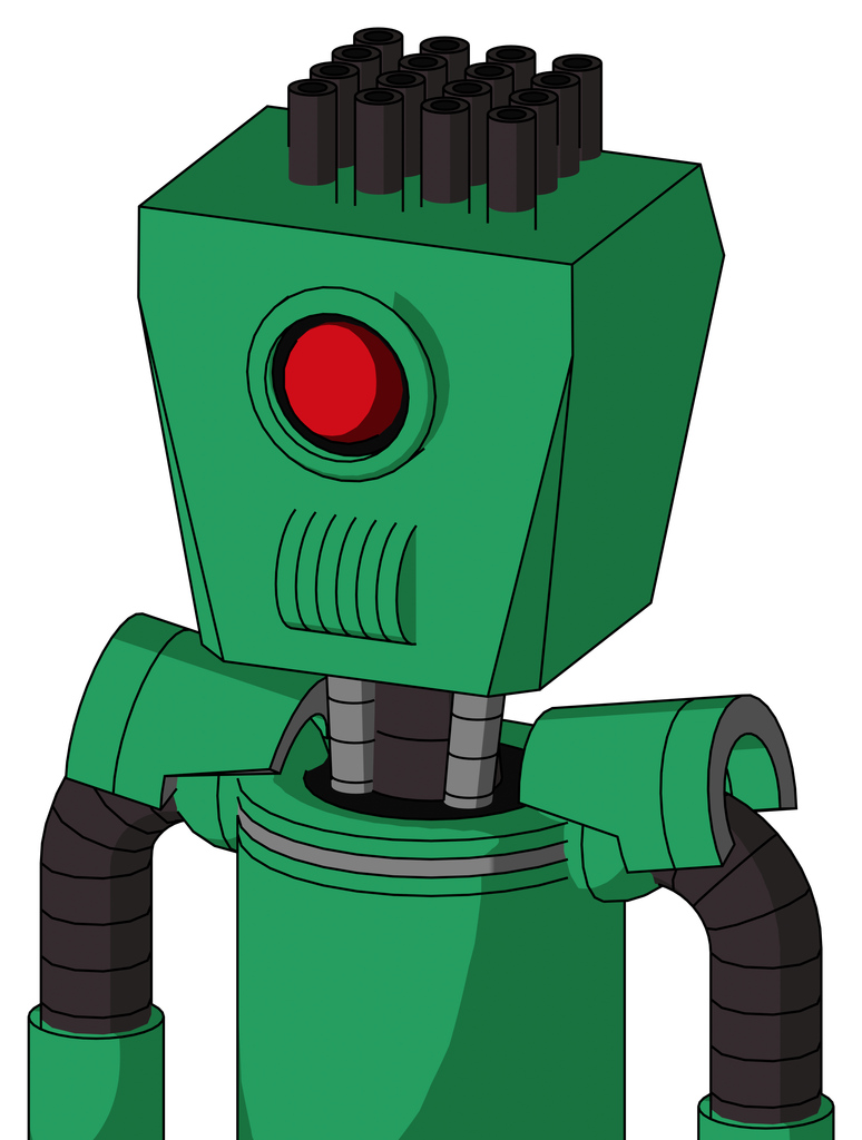 Green Automaton With Box Head And Speakers Mouth And Cyclops Eye And Pipe Hair