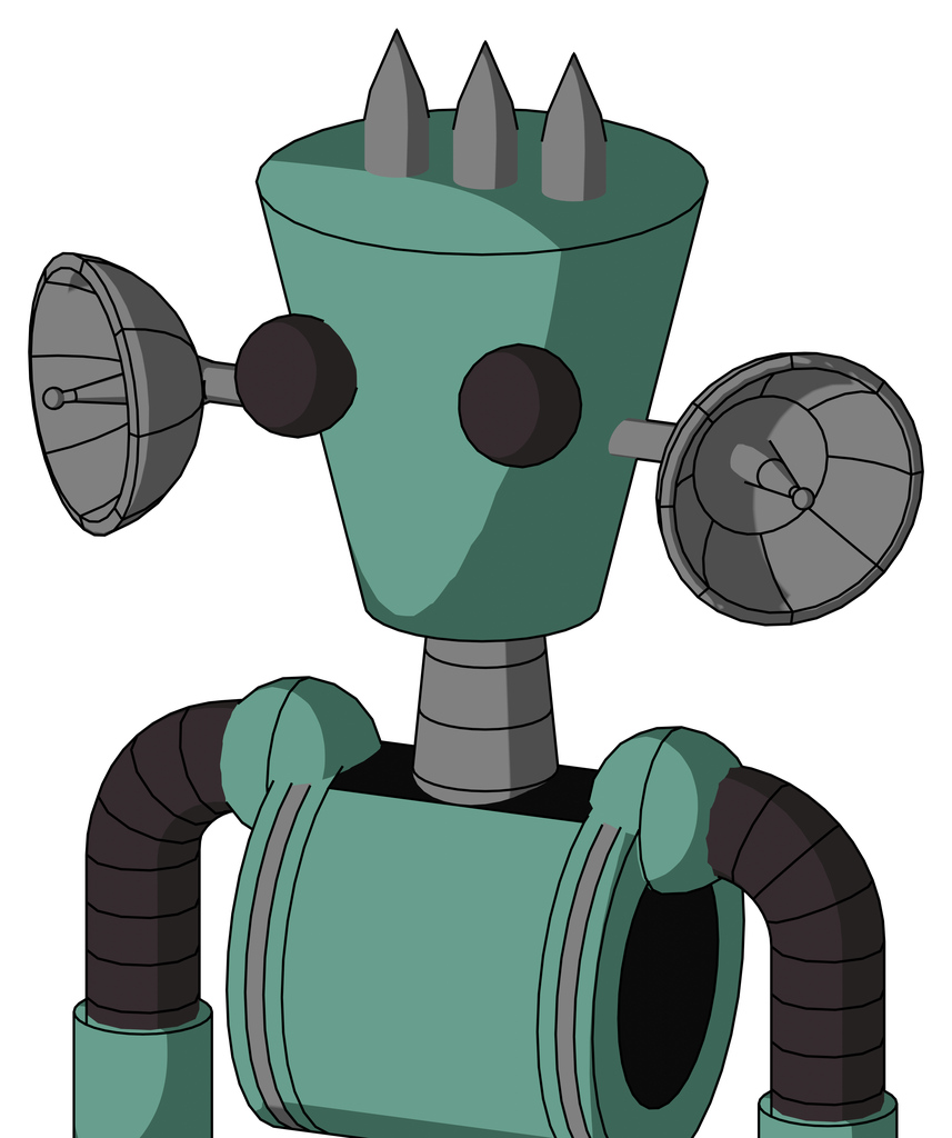 Green Mech With Cylinder-Conic Head And Two Eyes And Three Spiked
