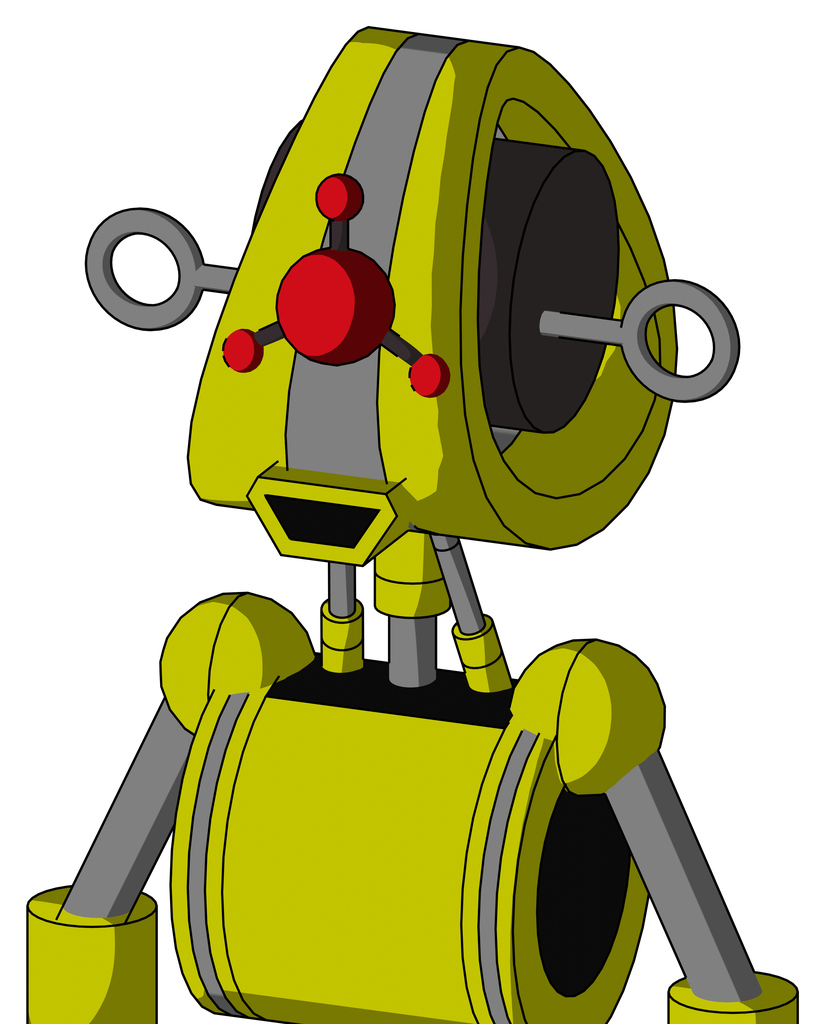 Yellow Robot With Droid Head And Happy Mouth And Cyclops Compound Eyes