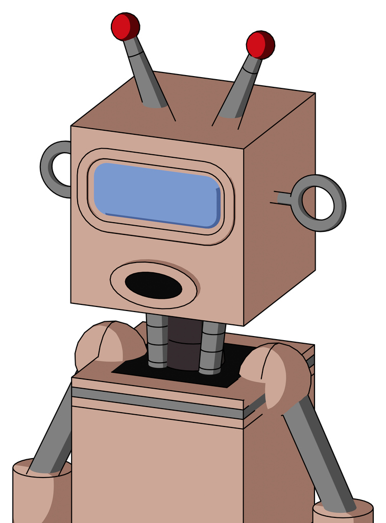 Light-Peach Mech With Box Head And Round Mouth And Large Blue Visor Eye And Double Led Antenna