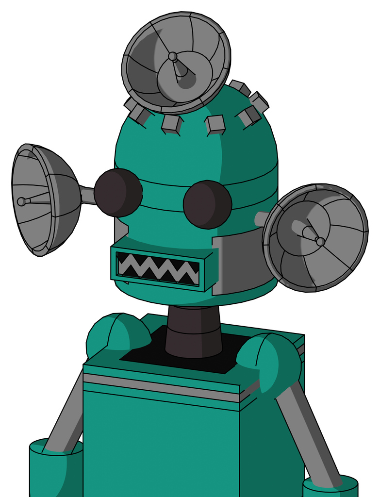 Green Automaton With Dome Head And Square Mouth And Two Eyes And Radar Dish Hat