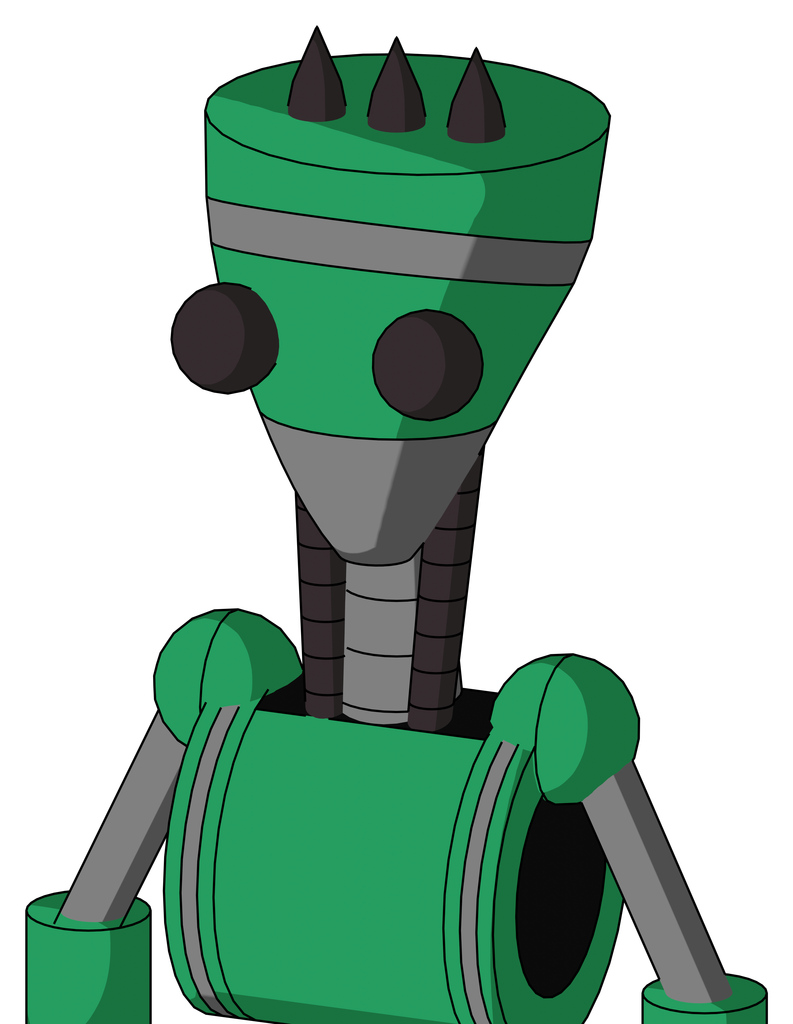 Green Automaton With Vase Head And Two Eyes And Three Dark Spikes