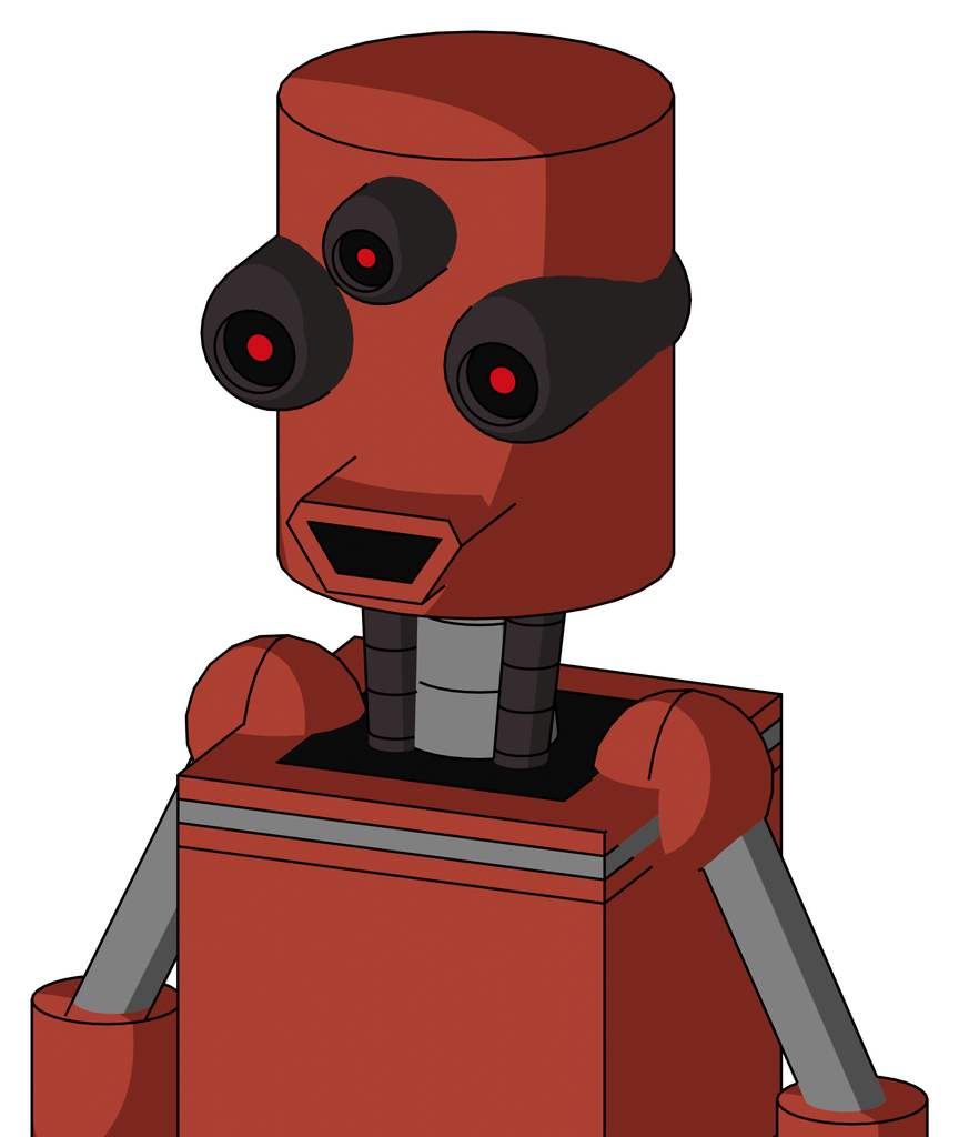 Red Automaton With Cylinder Head And Happy Mouth And Three-Eyed