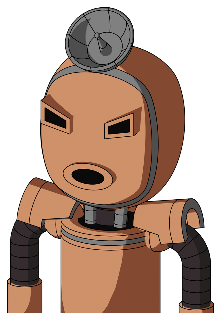 Peach Robot With Bubble Head And Round Mouth And Angry Eyes And Radar Dish Hat