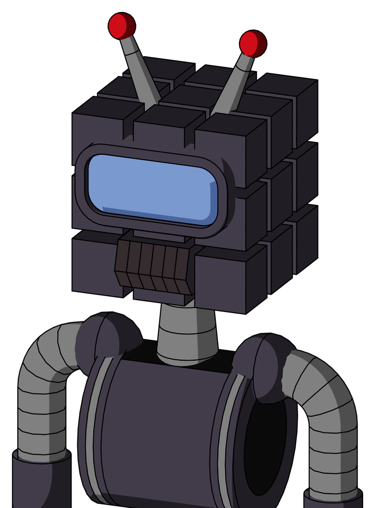Purple Robot With Cube Head And Dark Tooth Mouth And Large Blue Visor Eye And Double Led Antenna