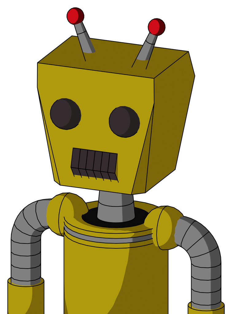Yellow Automaton With Box Head And Dark Tooth Mouth And Two Eyes And Double Led Antenna
