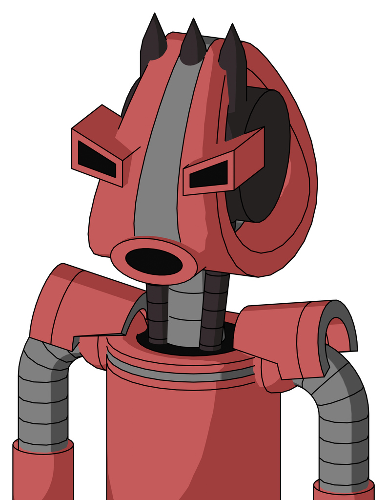 Pinkish Mech With Droid Head And Round Mouth And Angry Eyes And Three Dark Spikes