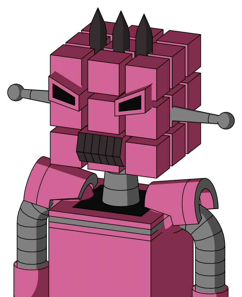 Pink Robot With Cube Head And Dark Tooth Mouth And Angry Eyes And Three Dark Spikes