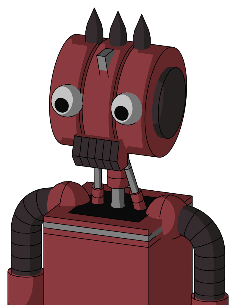 Red Mech With Multi-Toroid Head And Dark Tooth Mouth And Two Eyes And Three Dark Spikes