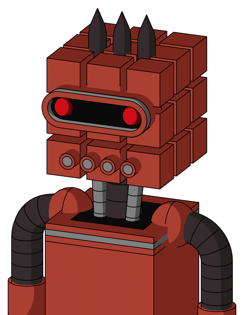 Red Automaton With Cube Head And Pipes Mouth And Visor Eye And Three Dark Spikes