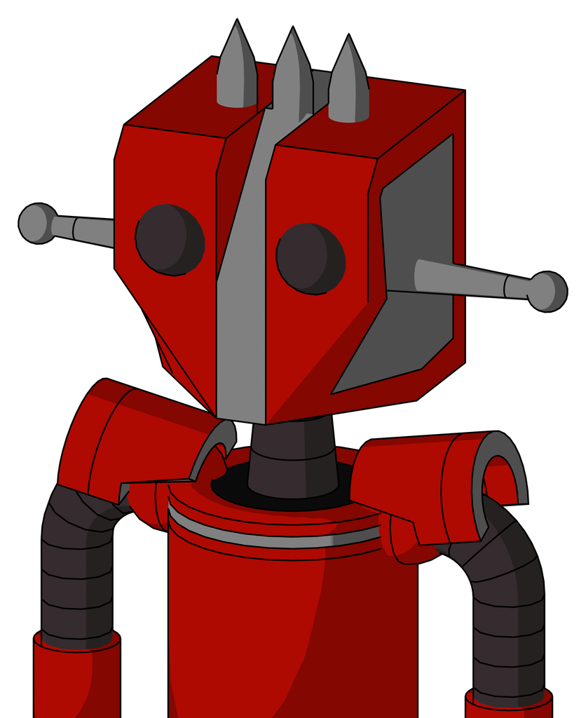 Red Mech With Mechanical Head And Two Eyes And Three Spiked