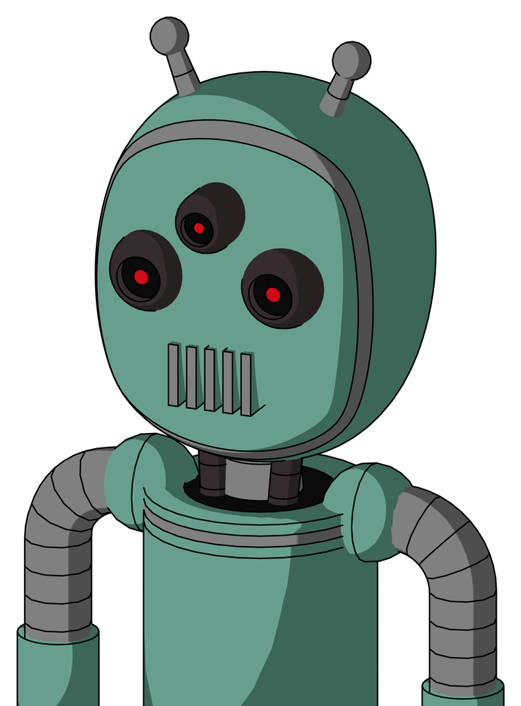 Green Mech With Bubble Head And Vent Mouth And Three-Eyed And Double Antenna