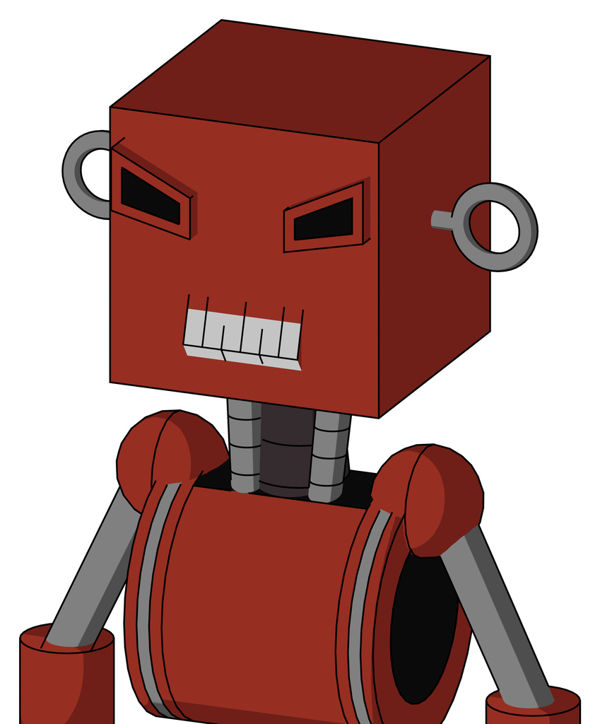Red Automaton With Box Head And Teeth Mouth And Angry Eyes