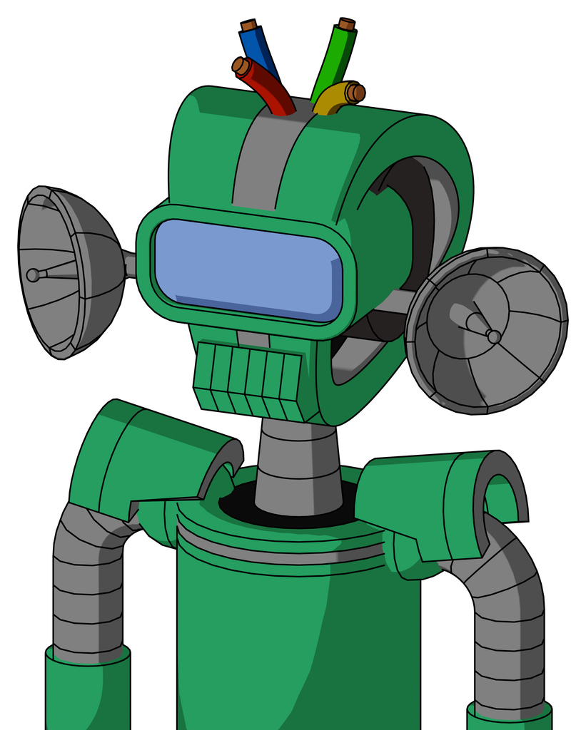 Green Automaton With Droid Head And Toothy Mouth And Large Blue Visor Eye And Wire Hair