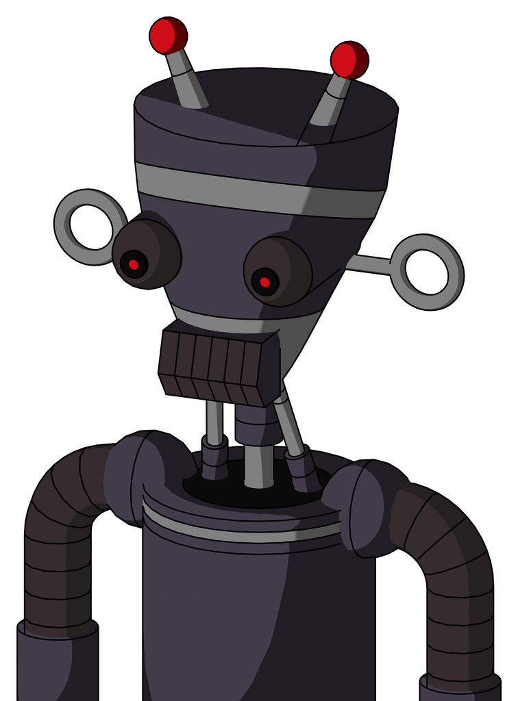 Purple Robot With Vase Head And Dark Tooth Mouth And Red Eyed And Double Led Antenna