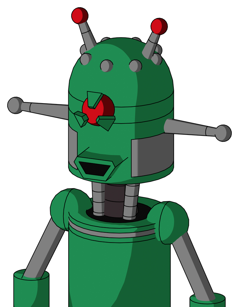 Green Automaton With Dome Head And Happy Mouth And Angry Cyclops Eye And Double Led Antenna