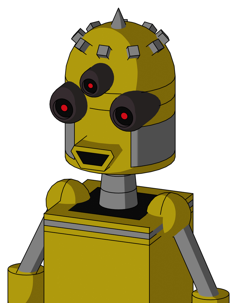 Yellow Automaton With Dome Head And Happy Mouth And Three-Eyed And Spike Tip
