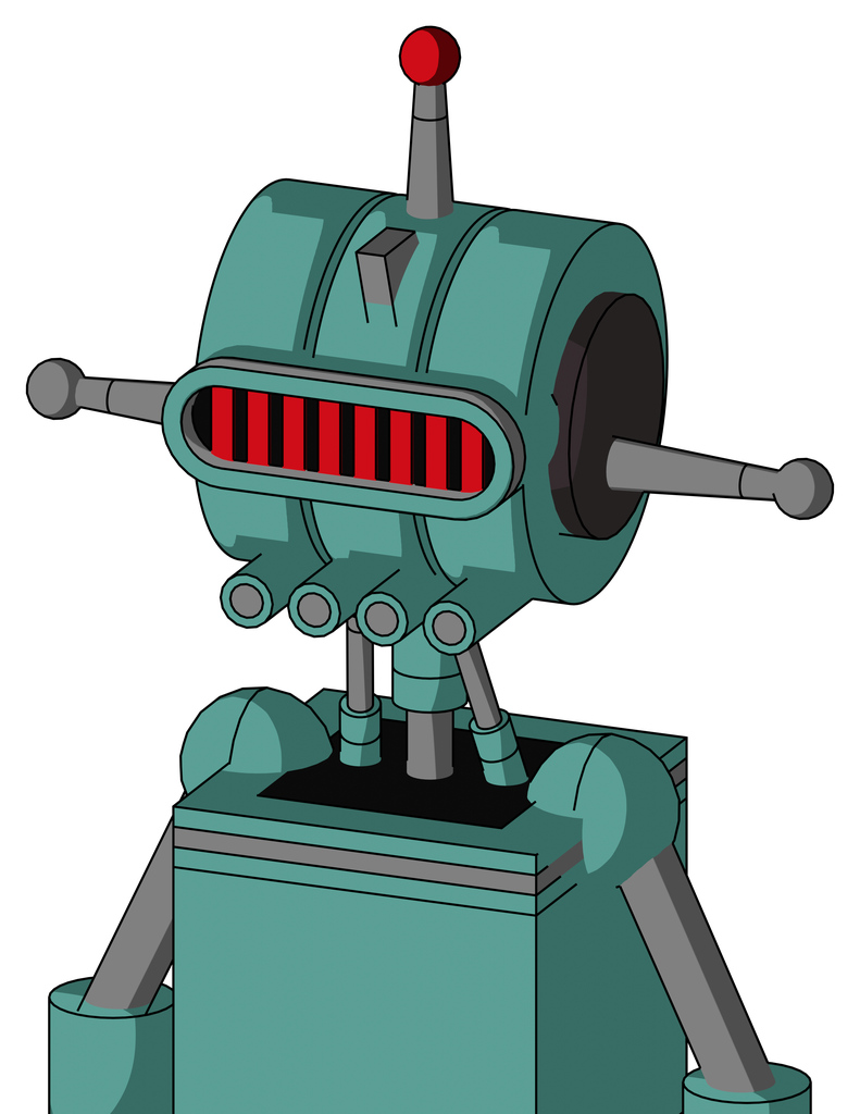 Greenish Mech With Multi-Toroid Head And Pipes Mouth And Visor Eye And Single Led Antenna