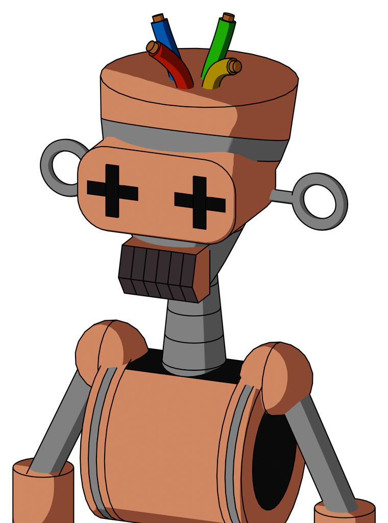 Peach Robot With Vase Head And Dark Tooth Mouth And Plus Sign Eyes And Wire Hair