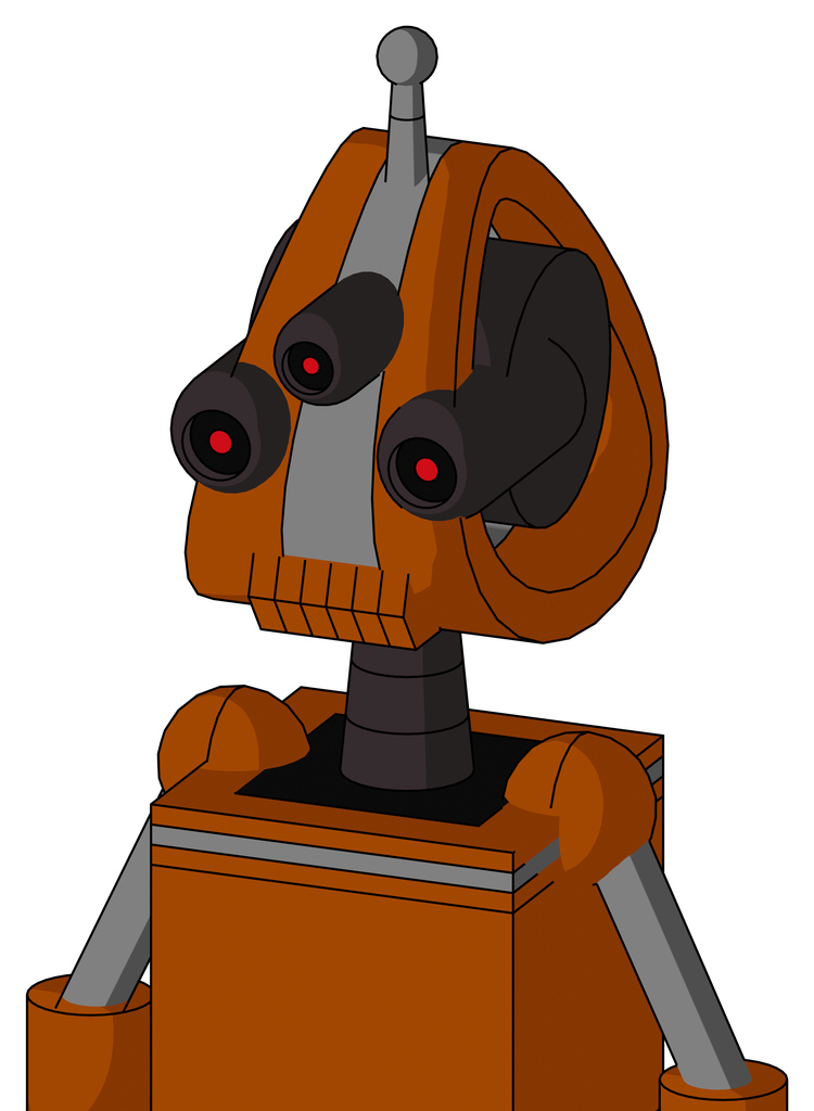 Redish-Orange Mech With Droid Head And Toothy Mouth And Three-Eyed And Single Antenna