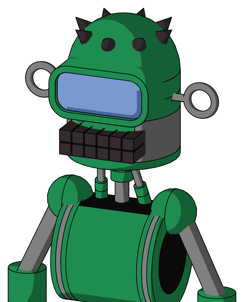 Green Automaton With Dome Head And Keyboard Mouth And Large Blue Visor Eye
