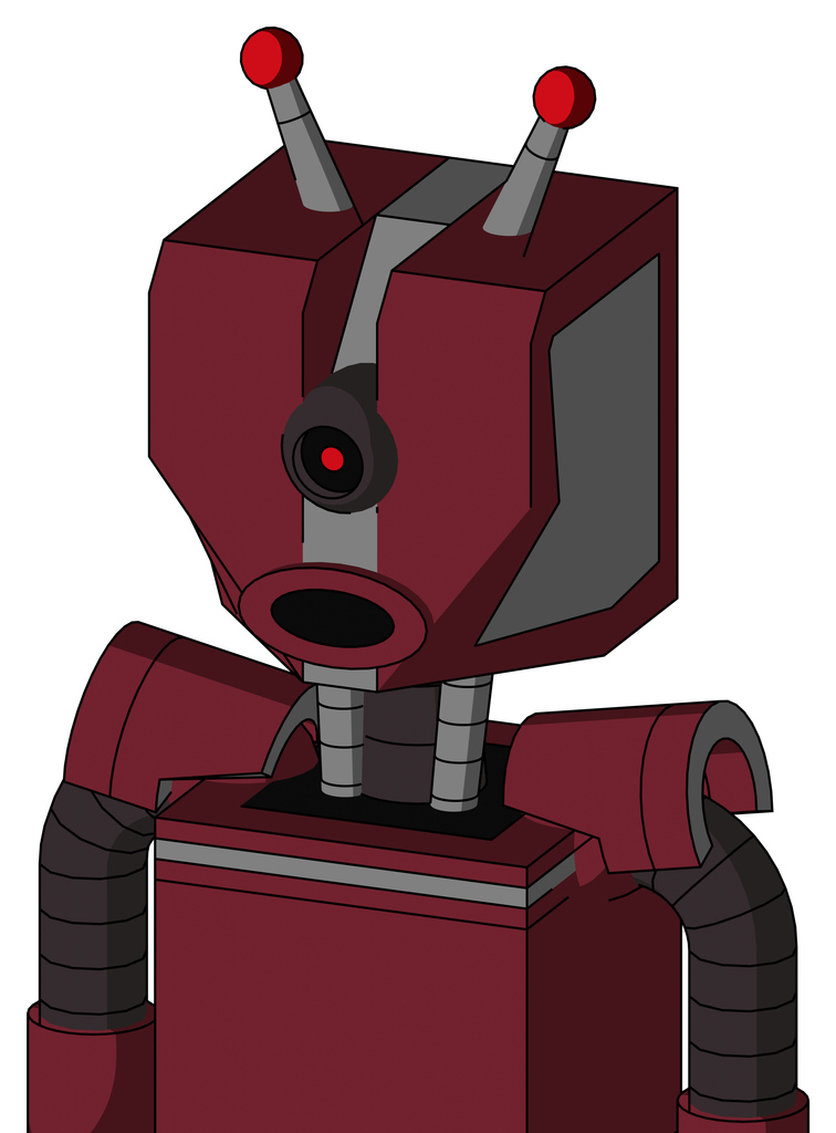 Red Droid With Mechanical Head And Round Mouth And Black Cyclops Eye And Double Led Antenna